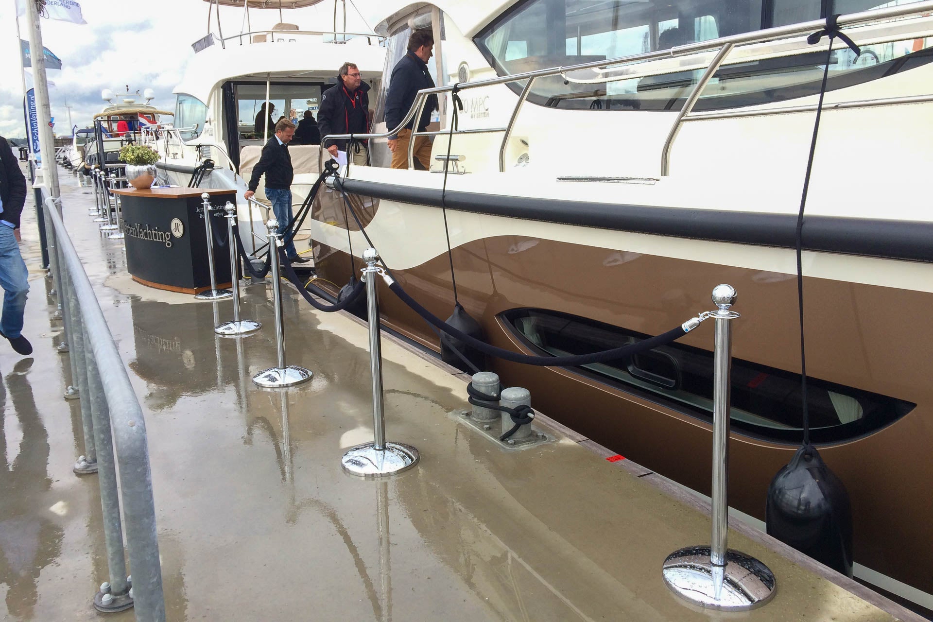 Beheers loopstromen tijdens presentaties en persmomenten. De palen staan stevig en het koord blijft gelijkmatig hangen zodat het beeld netjes blijft.